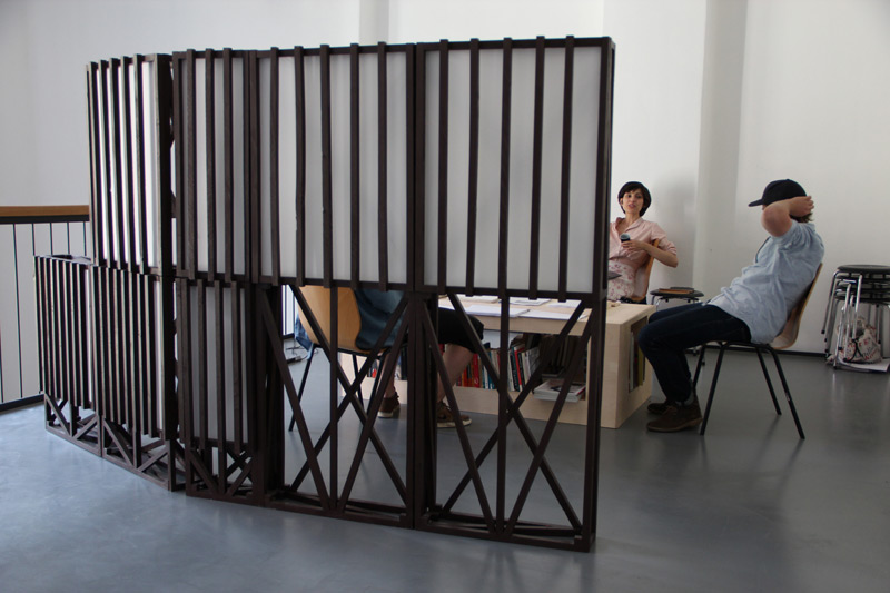 Bei dem Objekt sind die einzelnen Teile nur mit Hilfe von Spannung und Reibung miteinander verbunden. Die Nägel dienen nicht als feste Verbindung, denn sie wurden nicht in das Holz geschlagen, sondern wurden lediglich in Ösen gesteckt, um die Einzelteile miteinander zu verbinden. Die ausladenden Teile der Skulptur stabilisieren sich gegenseitig. Das Objekt ist durch seinen Aufbau sehr fragil und anfällig für Störungen. Das Abnehmen einer Holzplatte auf der einen Seite bedingt eine Reaktion auf der anderen Seite des Objektes.