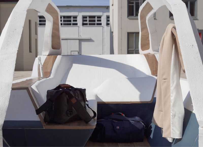 In meinem Entwurf geht es darum, dem Nutzer zu ermöglichen auf seiner Reise in einem autonomen Fahrzeug zu entspannen. Daher habe ich mich daher darauf konzentriert, den Fahrzeuginnenraum möglichst entspannungsfördernd zu gestalten. Hierfür habe ich mich dafür entschieden, die sichtbaren Elemente reduziert zu halten und Oberflächen aus hochwertigen, natürlichen Materialien anzulegen - hinter welchen sich die technologischen Aspekte verbergen – um eine angenehme Atmosphäre zu schaffen. Die Aufenthaltsfläche ist so entworfen, dass der Nutzer unterschiedliche Sitz- oder Liegepositionen einnehmen und gegebenenfalls auch mit einem Partner bequem darauf entspannen kann. Zudem sind in ihr sowohl eine Sitzheizung als auch eine Massageelement integriert, um den Nutzer zusätzlich zu entspannen. Dieser Aufenthaltsbereich wird visuell von einem hölzernen Rahmen gehalten, welcher als Ablage für beispielsweise Bücher oder Wassergläser dienen kann und auf dem elektronische Geräte per Induktion geladen werden können. Im vorderen Bereich dient er zudem der Ablage von Taschen und der Verortung von Decke und Kissen, welche der Nutzer bei Bedarf hinzuziehen kann. Unter dem Rahmen befindet sich ein angeschrägter Sockel, unter welchem zudem auch Schuhe oder Gepäck verstaut werden können. Visuell gehalten wird das Interieur durch zwei pergolaartige Bügel, die sich schützend um den Kokon des Innenraums legen. Die aus Smartglasses bestehenden Glasscheiben sind mattier-, verspiegel- und abdunkelbar und können zudem wie Bildschirme bespielt werden. Abgerundet wird der Konzeptentwurf durch die Integration einer Medieneinheit in die Bügel, welche eine Variation von Licht, Audio und Klimabedingten Aspekten ermöglichen. Der Nutzer betritt das Fahrzeug von vorne. Um dies zu ermöglichen, öffnet sich die Tür nach oben und eine Rampe klappt herunter um das Eintreten zu erleichtern.