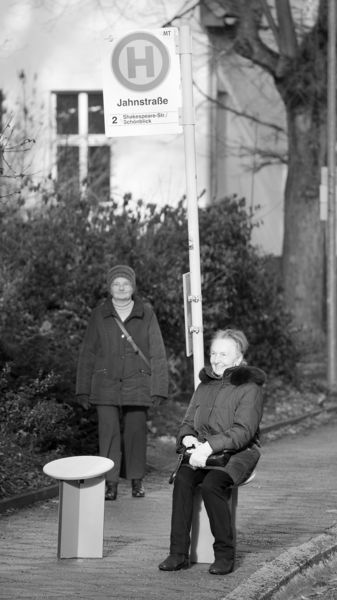 Eine weitere Erkenntnis in der Recherche mit Senioren ist, dass JEGLICHE ART VON REAKTION IST POSTIVE ZU SEHEN. Beispielhaft für die Entfremdung in der Gesellschaft und das Nutzen von Etappenabschnitten wie die Bushaltestelle ist eine Sitzgelegenheit entstanden, welche Kommunikation fördern kann.