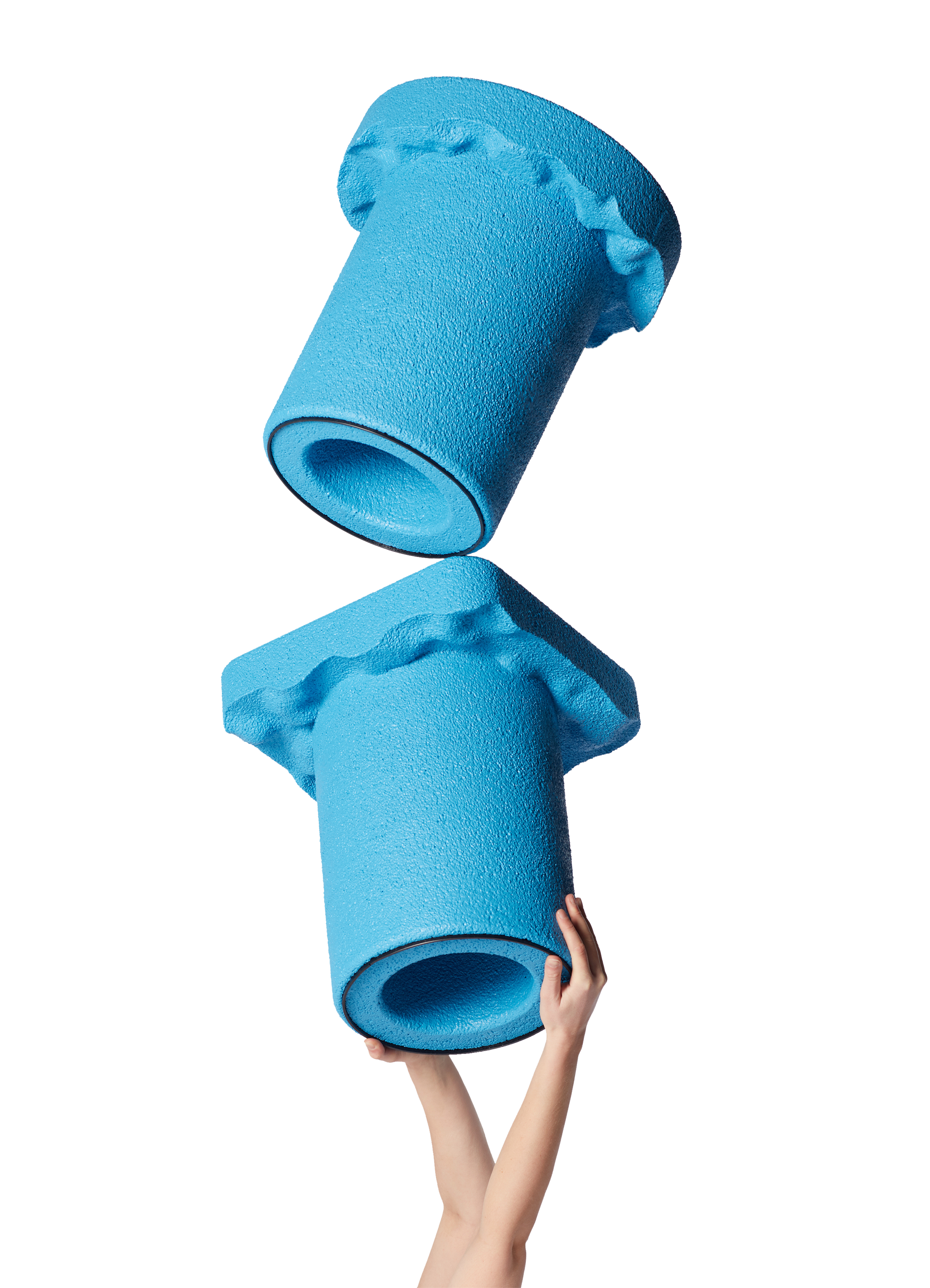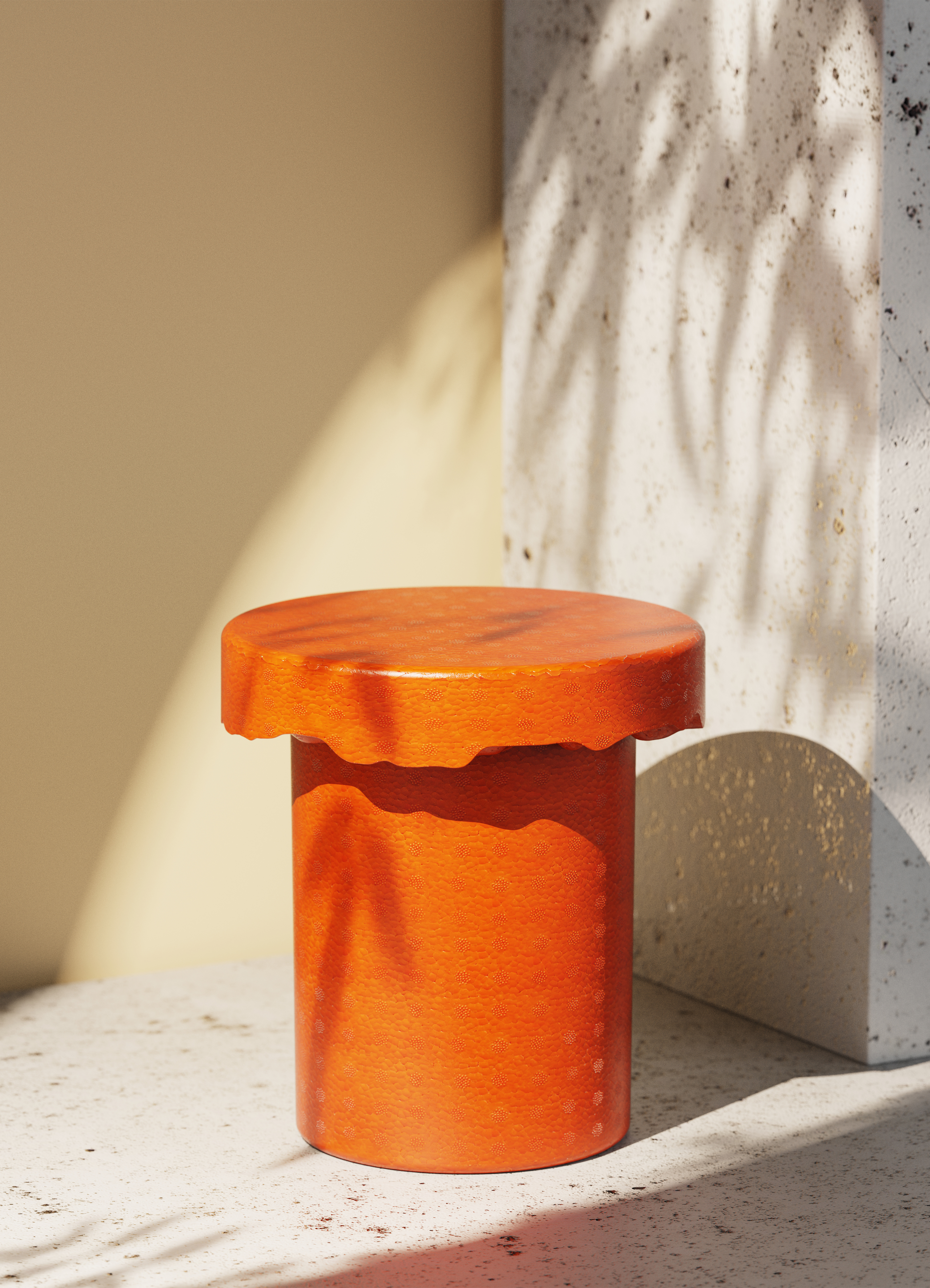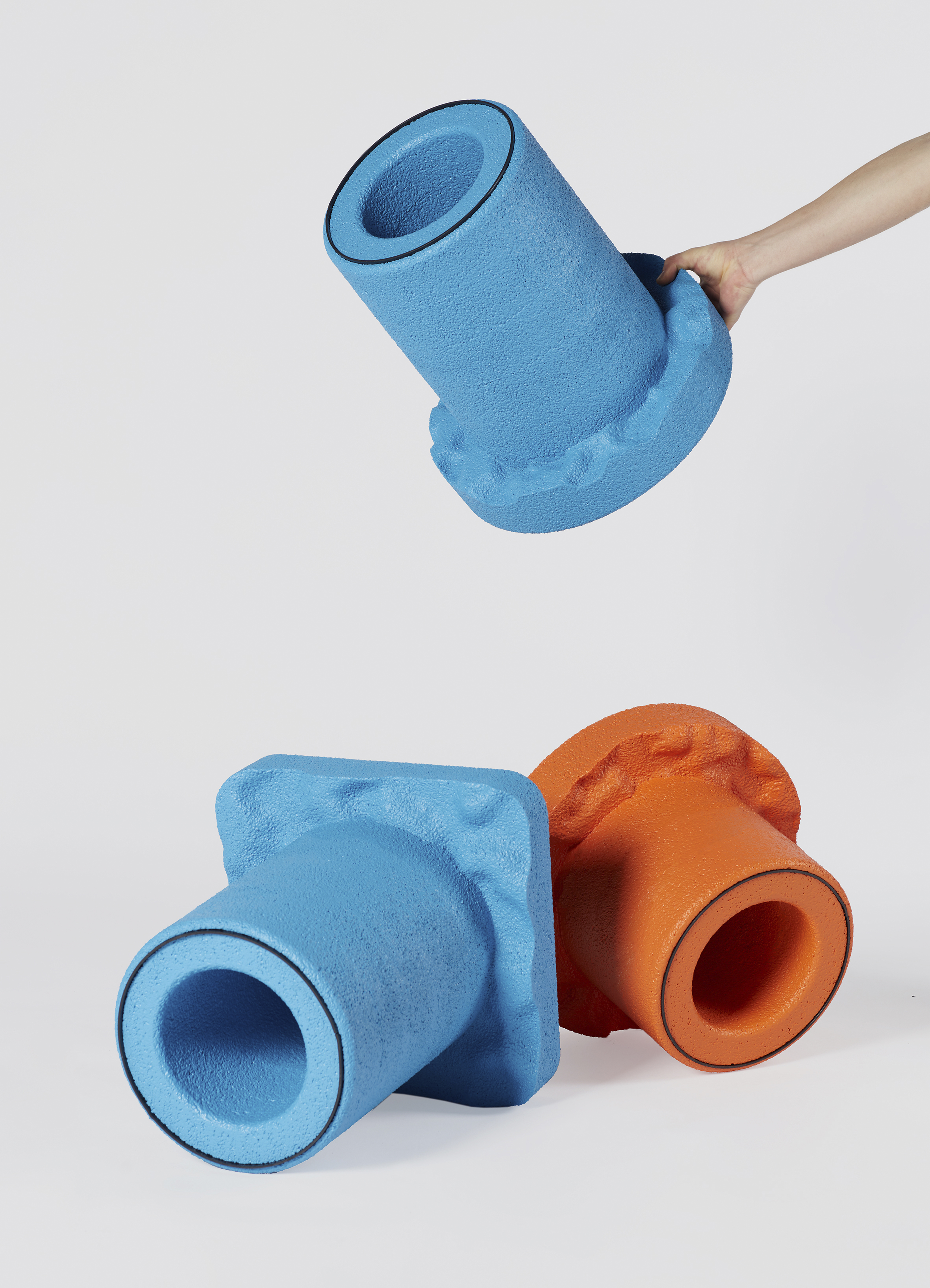 Ein zentraler Aspekt der Arbeit ist die haptisch-taktile Sitzflächenunterseite, die durch eine fotogrammetrisch stilisierte Steinstruktur verstärkt wird. Das Material der Serie ist recycelbar, abriebfest und witterungsbeständig, was es besonders für den Einsatz im Freien prädestiniert. Die Grundkörper bestehen aus einem Monomaterial und tragen somit zur Nachhaltigkeit des Produkts bei.