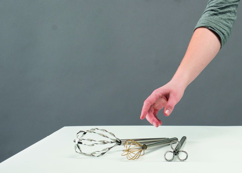 Die Hand als Werkzeug bildet der Ausgangspunkt der Arbeit. Dabei werden Produkte durch gezielten Materialeinsatz effizienter und können somit vermehrt per Hand bedient werden. Über die Patina welche besonders gepflegt werden muss, erfährt der Benutzer einen bewussten Umgang und die weiße Ware welche im Küchenschrank verschwindet bleibt Geschichte.