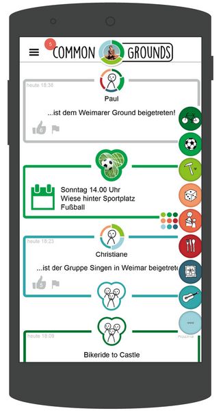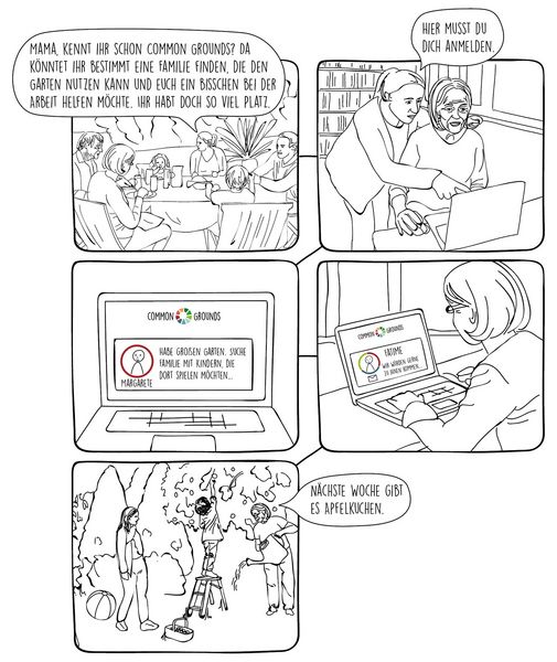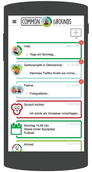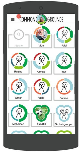 Eine ausführliche Recherche der Situation der Flüchtlinge und die Auseinandersetzung mit den Betroffenen führten zu dem Ergebnis, dass ein direkter Kontakt zwischen Flüchtlingen und anderen Bewohnern für die Integration dringend notwendig ist. So entstand der Ansatz, die Menschen über ihre Interessen zu vernetzen, um nachhaltige Verbindungen zwischen ihnen zu schaffen. Die Online-Plattform »Common Grounds« bietet seinen Mitgliedern die Möglichkeit, gleiche Interessen schnell zu erkennen, sich kennen zu lernen und gemeinsam aktiv zu werden.