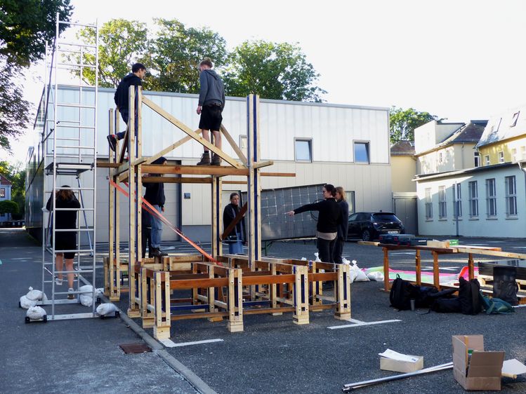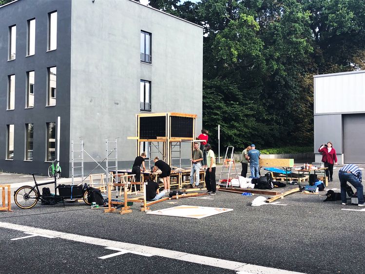 17 Studierende aus den Bachelor- und Masterstudiengängen Architektur sowie Urbanistik haben in einem zweiwöchigen Workshop einen Testraum für alternative Nutzungen des Campus-Geländes entworfen und gebaut.