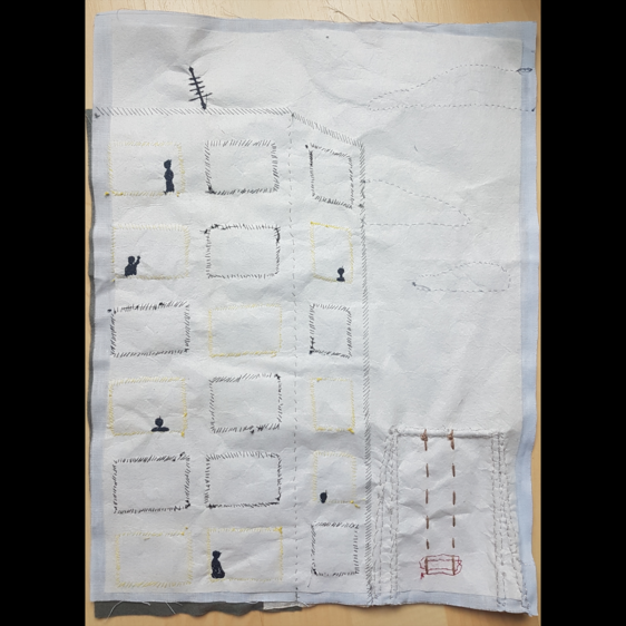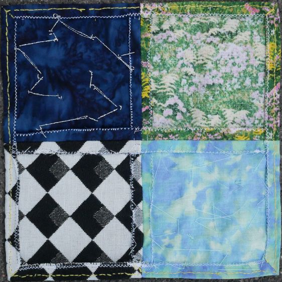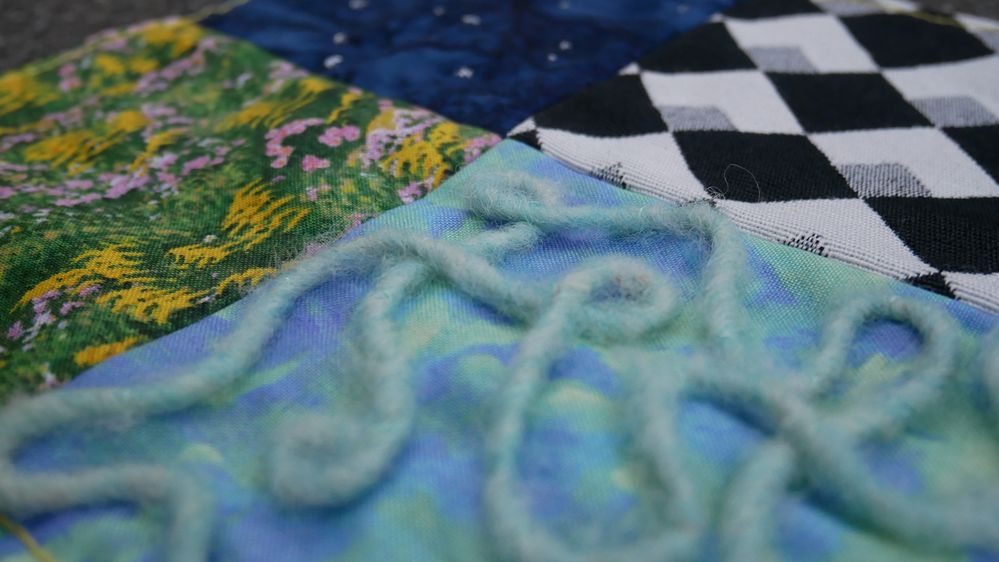 beschädigt waren. Ich habe mich von dem Querschnitt einer Zwiebel inspirieren lassen und versucht, kreisförmige Formen zu nähen.