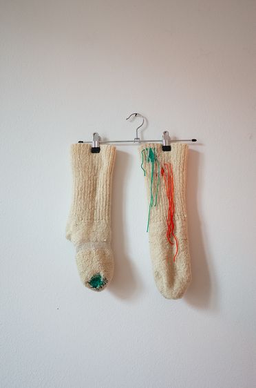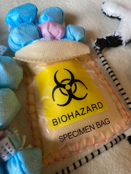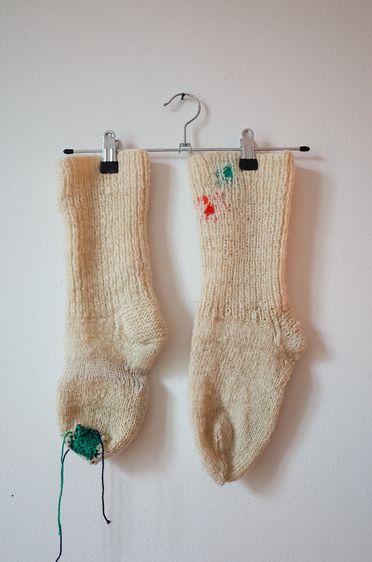 - grauer Stoff und Luftpolsterfolie, um das Wasser darzustellen, die Zeit, die ich im Sommer am See und im Winter im Bad verbracht habe, um Schönheitsroutinen zu entwickeln und eine tiefere Verbindung zu meinem Körper aufzubauen