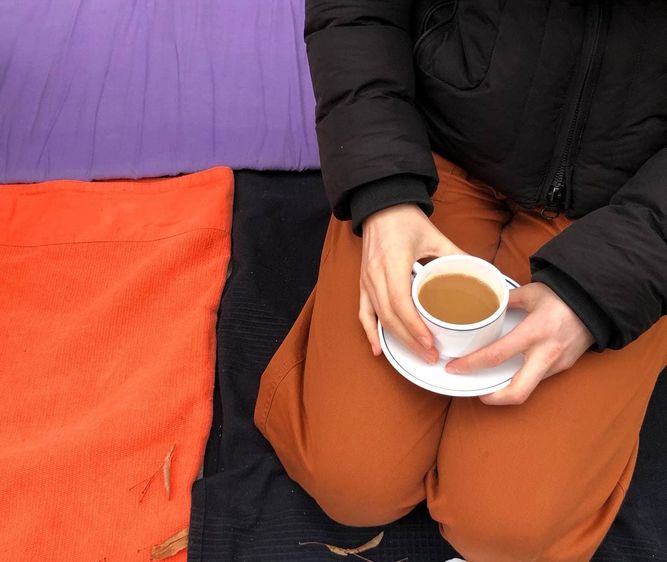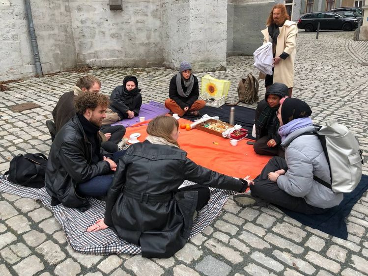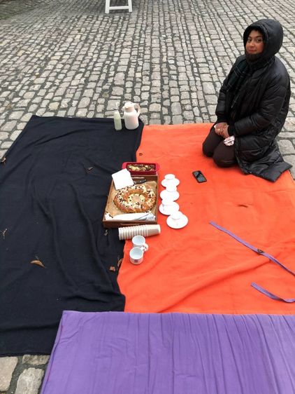 Das ist es, wofür unser Projekt steht. Wir haben eine Einladung formuliert: Lasst uns gemeinsam steppen. Wir luden Freunde und Freunde von Freunden und Fremde ein, eine Picknickdecke mitzubringen und ein Picknick in aller Öffentlichkeit zu machen. Jeder war eingeladen, sich selbst mitzubringen, etwas zu tun, zu essen oder zu trinken. Die Ränder jeder Decke markieren metaphorisch den Raum des Einzelnen. Dies steht für das Bedürfnis jedes Einzelnen, für sich selbst zu sorgen, für die Verantwortung, für das eigene Wohlbefinden zu sorgen. Das Zusammentragen mehrerer Decken transportiert die hoffnungsvolle Vorstellung, dass wir alle gemeinsam in dieser Situation sind. Naht an Naht, können wir das Bild eines großen Quilts erzeugen.