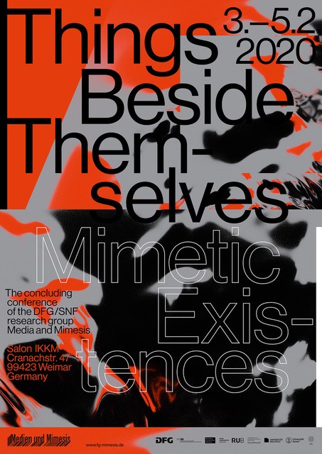 Vom 3. bis 5. Februar 2020 veranstaltet die DFG-Forschungsgruppe Medien und Mimesis ihre internationale Abschlusstagung »Things beside themselves. Mimetic Existences«. Das von der Deutschen Forschungsgemeinschaft (DFG) und dem Schweizerischen Nationalfonds (SNF) geförderte Kooperationsprojekt hatte zum 1. April 2014 unter anderem an der Bauhaus-Universität Weimar seine Arbeit aufgenommen.