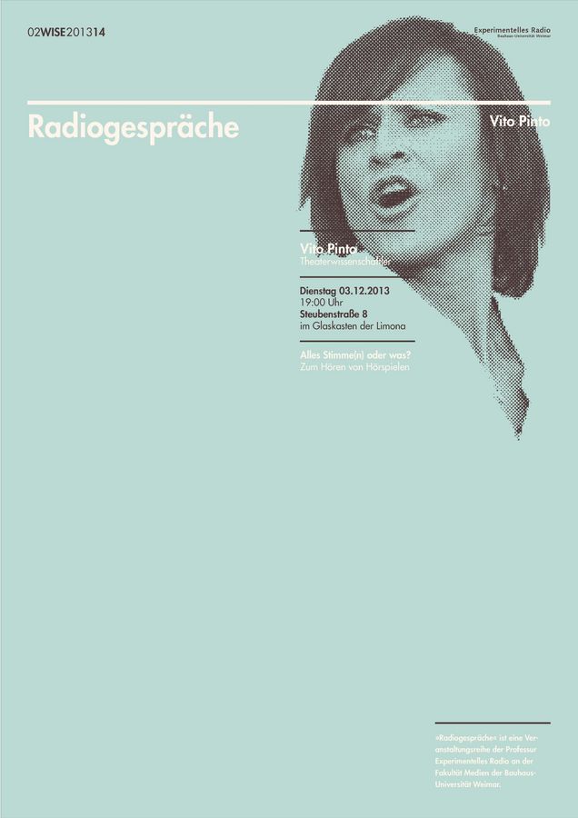 »Radiogespräche« sind eine Veranstaltung der Professur Experimentelles Radio an der Fakultät Medien der Bauhaus-Universität Weimar.