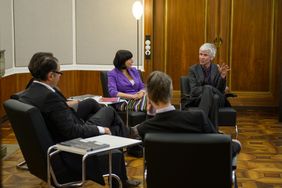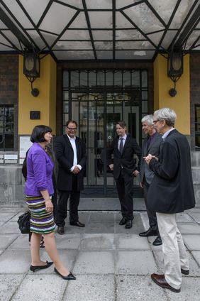 Im Gespräch mit den beiden Direktoren des IKKM, Prof. Lorenz Engell und Prof. Bernhard Siegert, interessierte sich Walsmann besonders für Forschungsansätze innerhalb des Kollegs und konkrete Fragestellungen, zum Beispiel, wie sich die Technisierung unserer Lebenswelten auf den Menschen auswirkt. Thematisiert wurde die Attraktivität der Weimarer Forschung für Geisteswissenschaftler weltweit und die hohe internationale Reputation des Kollegs. Die beiden Direktoren betonten, dass ein Ruf nach Weimar inzwischen als bedeutsame Station innerhalb einer geisteswissenschaftlichen Karriere gelte.