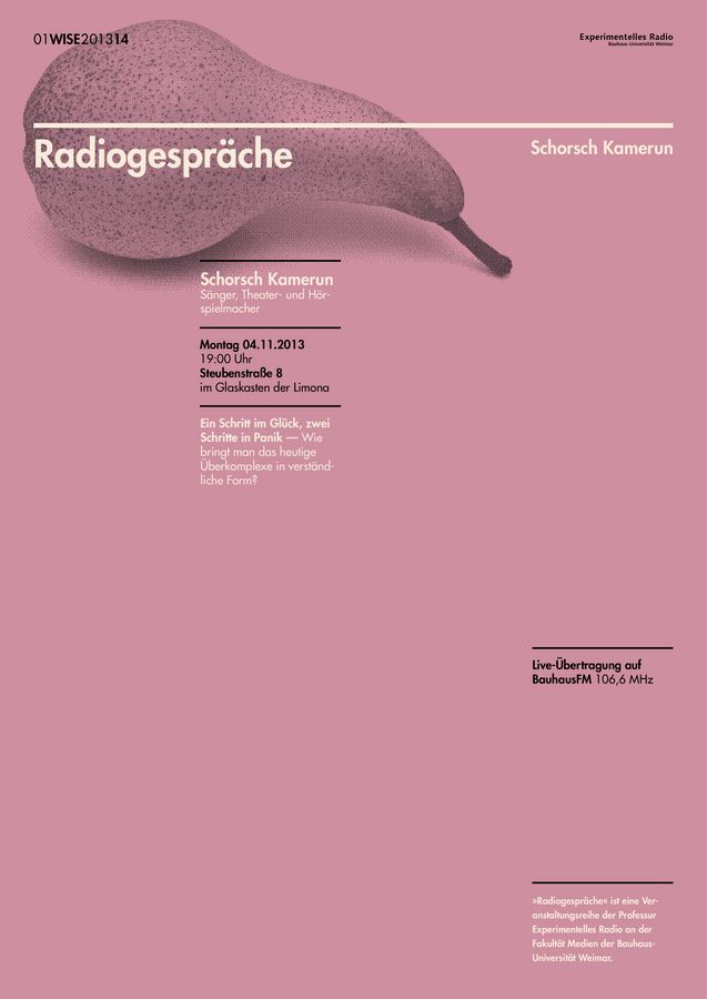 »Radiogespräche« sind eine Veranstaltung der Professur Experimentelles Radio an der Fakultät Medien der Bauhaus-Universität Weimar.