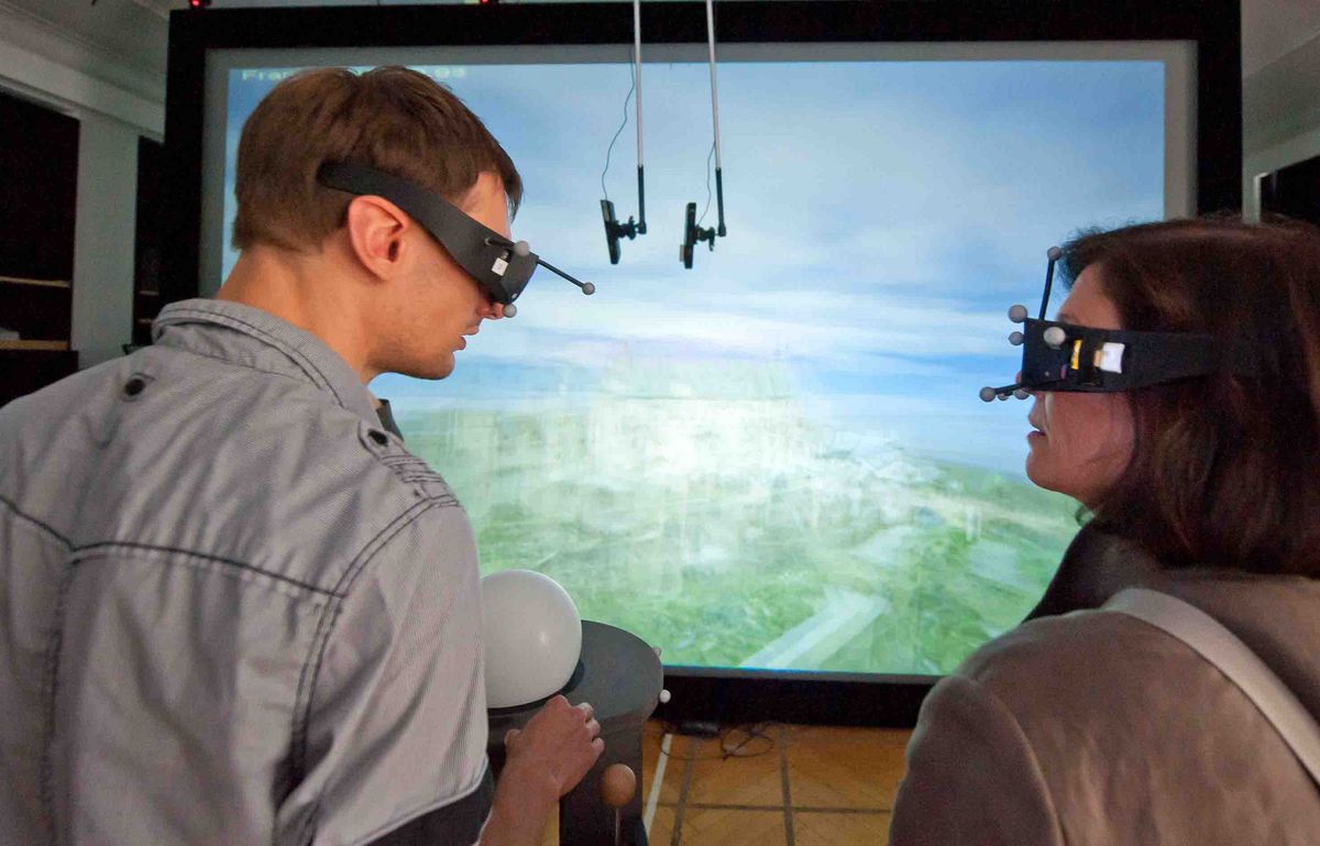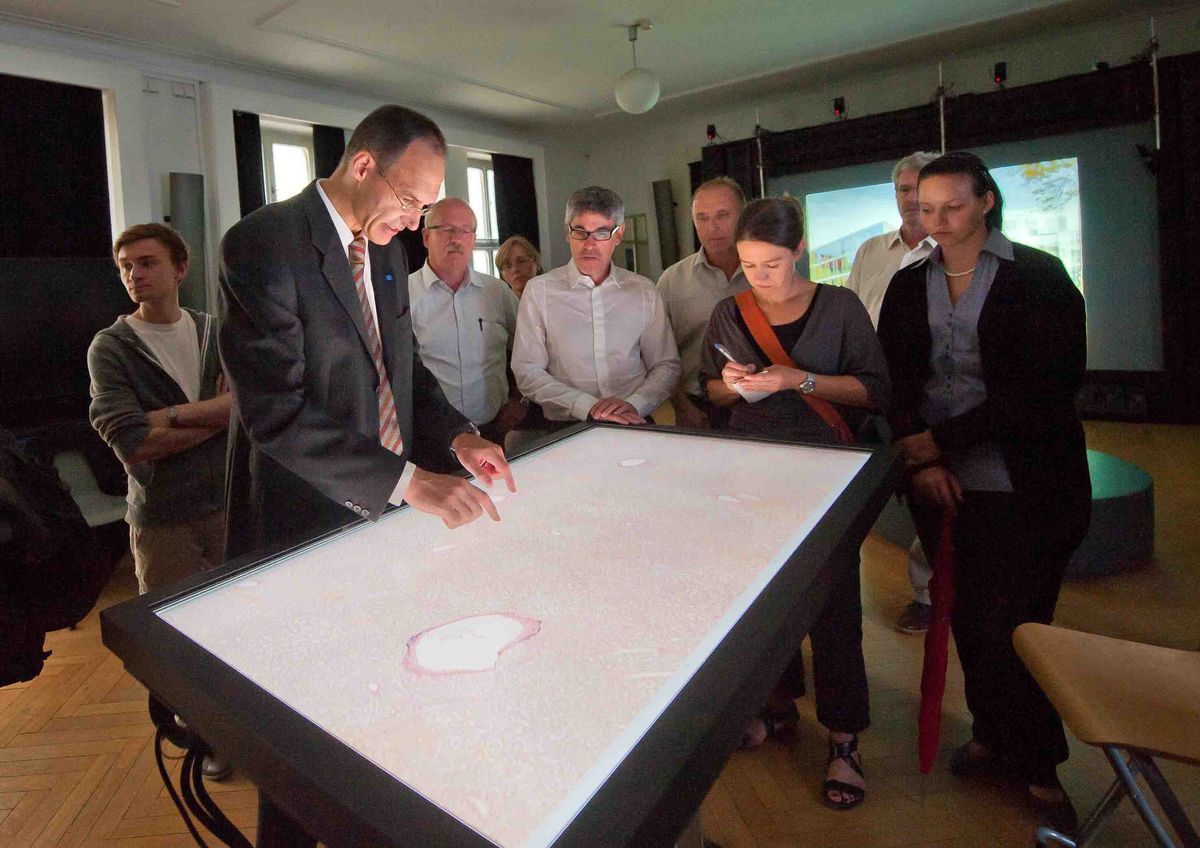 Im Anschluss an die Grundsteinlegung zeigte die Professur Systeme der Virtuellen Realität beispielhafte Projekte aus dem Bereich 3D-Technologien in ihrem Virtual-Reality-Lab der Fakultät Medien, wie sie nach Fertigstellung des Baus ab 2013 auch in größerem Maßstab im Digital Bauhaus Lab umgesetzt werden sollen.