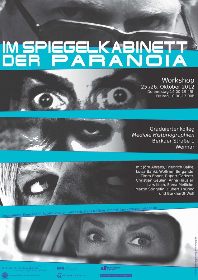 Unser Workshop möchte ausgehend von diesem auffälligen Ungleichgewicht Beiträge versammeln, die sich – jenseits des Dresdener Gerichtspräsidenten – jeweils einer konkreten oder fiktiven paranoischen Figur widmen. Ziel ist, weniger bekannte bis unbekannte Paranoia-Fälle vorzustellen. Diese Erweiterung der Materialbasis soll eine Perspektive zulassen, die die paranoiden Subjekte in Verbindung setzt mit ihrer Einbettung in Gefüge von Medien, Wissen und Macht.