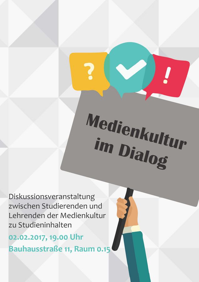 Alle Studierenden der Studiengänge Medienkultur und Medienwissenschaft sind herzlich eingeladen, an der Diskussion teilzunehmen.