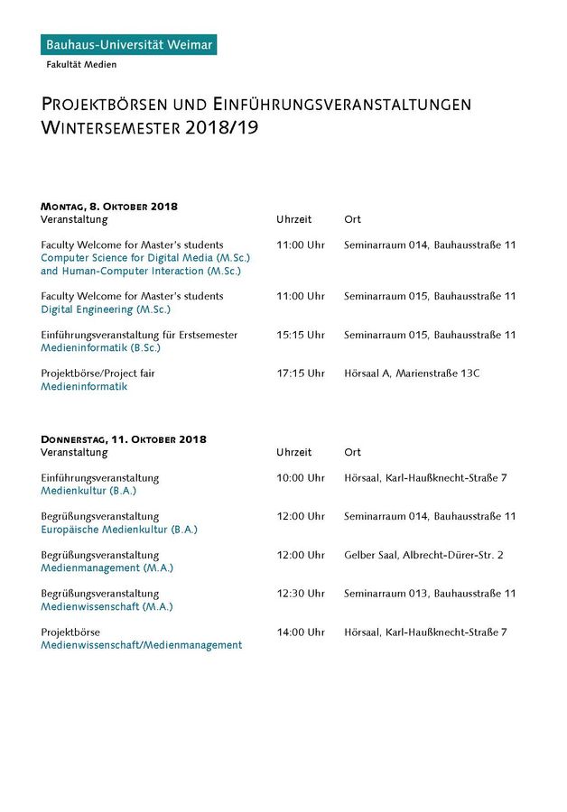 Einführungsveranstaltung für Erstsemester Medieninformatik (B.Sc.)