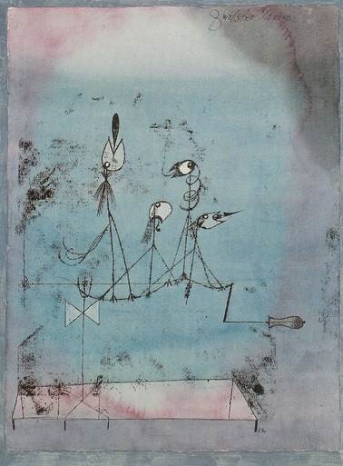 In ihrem nunmehr elften Jahr und kurz vor dem großen Bauhaus-Jubiläum besinnt sich die summaery2018 zumindest dem Motto nach auf die Wurzeln des Bauhauses: Paul Klee, in den Anfangsjahren des Bauhauses als Meister für Form- und Farbgebung in Weimar, fertigt im Jahre 1922 ein Aquarell mit dem Titel »Zwitscher-Maschine« an – noch lange bevor es ein Internetportal namens Twitter gibt. Dort dargestellt ist ein drehbares Gestänge, auf dem vier Vögel sitzen. Es verbindet das Biologische mit dem Technologischen: Per Handkurbel kann das Gestänge in Bewegung versetzt werden, sodass die Vögel nach oben und unten »fliegen«, um auf diese Weise – so lässt sich jedenfalls vermuten – unterschiedliche Töne hervorbringen, also zwitschern.