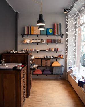 Die Werkstatt ist als ganzheitliches Laden- und Geschäftskonzept gedacht, das sich auf Papier-, Büro- und Schreibwaren spezialisiert. Ganz im Sinne des Bauhaus-Gedanken werden dort die Bereiche Entwurf, Verarbeitung und Verkauf vereint.