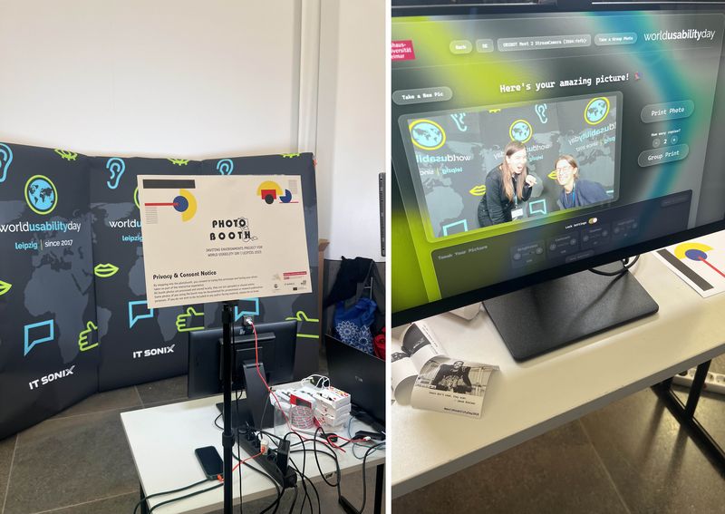 Margarita and her project students exhibited their PhotoBooth project at WUD (World Usability Day), using this for another successful trial of the installation. HCI student Shriya Singh (together with our group member Konstantina) had a short presentation and show of her project on using Comics for surveys. And - we met a whole bunch of HCI unexpectedly (as well as another BUW colleague from the VR group), who kindly assisted in setting up our PhotoBooth and were more than happy for a group photo!