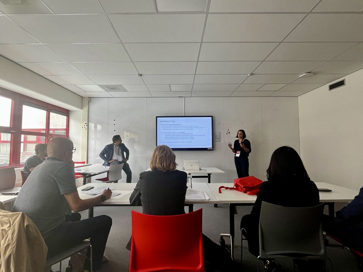 Dr. Jürgen Rösch, Juniorprofessor für Digitale Ökonomien, und Maxi Rauch, wissenschaftliche Mitarbeiterin an der Juniorprofessur für Digitale Ökonomien, stellten unter dem Titel "Unraveling the Tapestry: Impact, drivers and challenges of public platforms in Germany« Plattformvorschläge für den öffentlich-rechtlichen Rundfunk vor. Darüber hinaus gaben sie in ihrem Vortrag „Economic Perspectives on Redefining Public Service Media in the Digital Era: Broadcasting to Media Platforms“ aktuelle Einblicke in die Chancen und Herausforderungen beim Aufbau öffentlicher Plattformen im Verwaltungs- und Bildungsbereich.