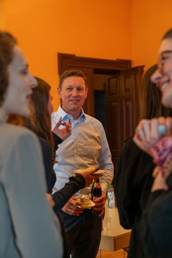 Nach der offiziellen Auftaktveranstaltung und der Modulbörse lud der Fachbereich zu „Cake & Conversation“ ein. Bei Kaffee und Kuchen kamen Studierende, Lehrende und Mitarbeitende miteinander ins Gespräch. In offener Atmosphäre wurde über Hintergründe, Motivation, Erwartungen und Pläne bspw. auch für das Auslandssemester gesprochen. Durch die Vorstellung ausgewählter Projektarbeiten aus vergangenen Semestern erhielten die neuen Studierenden zudem einen lebendigen Eindruck von den Themen, Methoden und kreativen Ansätzen des Studiengangs.