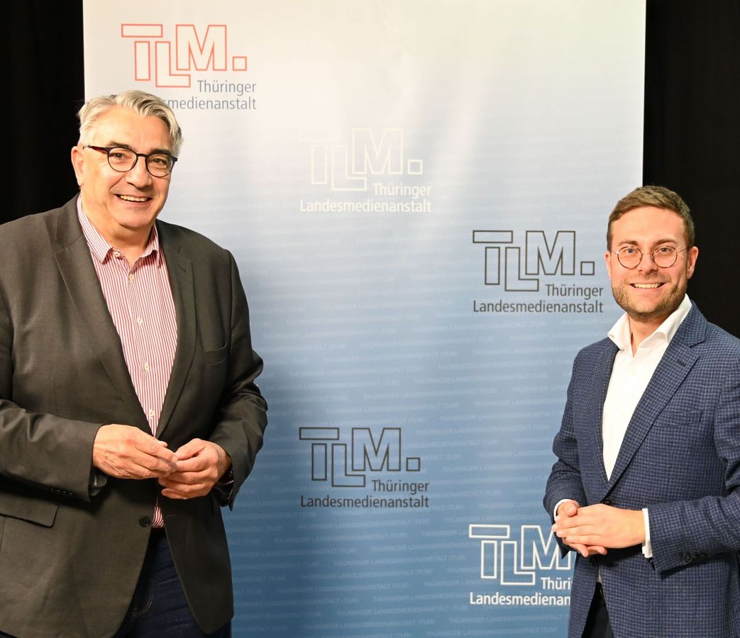 Insbesondere diese Fragen bildeten die Grundlage des Gesprächs, zu dem Jochen Fasco, Direktor der Thüringer Landesmedienanstalt (TLM), Jun.-Prof. Dr. Christopher Buschow im Mai 2023 in die Räumlichkeiten der TLM in der Erfurter Steigerstraße eingeladen hatte. An dem Austausch nahmen auch Kirsten Kramer, stellvertretende TLM-Direktorin, sowie Thomas Heyer, Bereichsleiter Medientechnologie, Lokalfernsehen und Medienwirtschaft bei der TLM, teil.