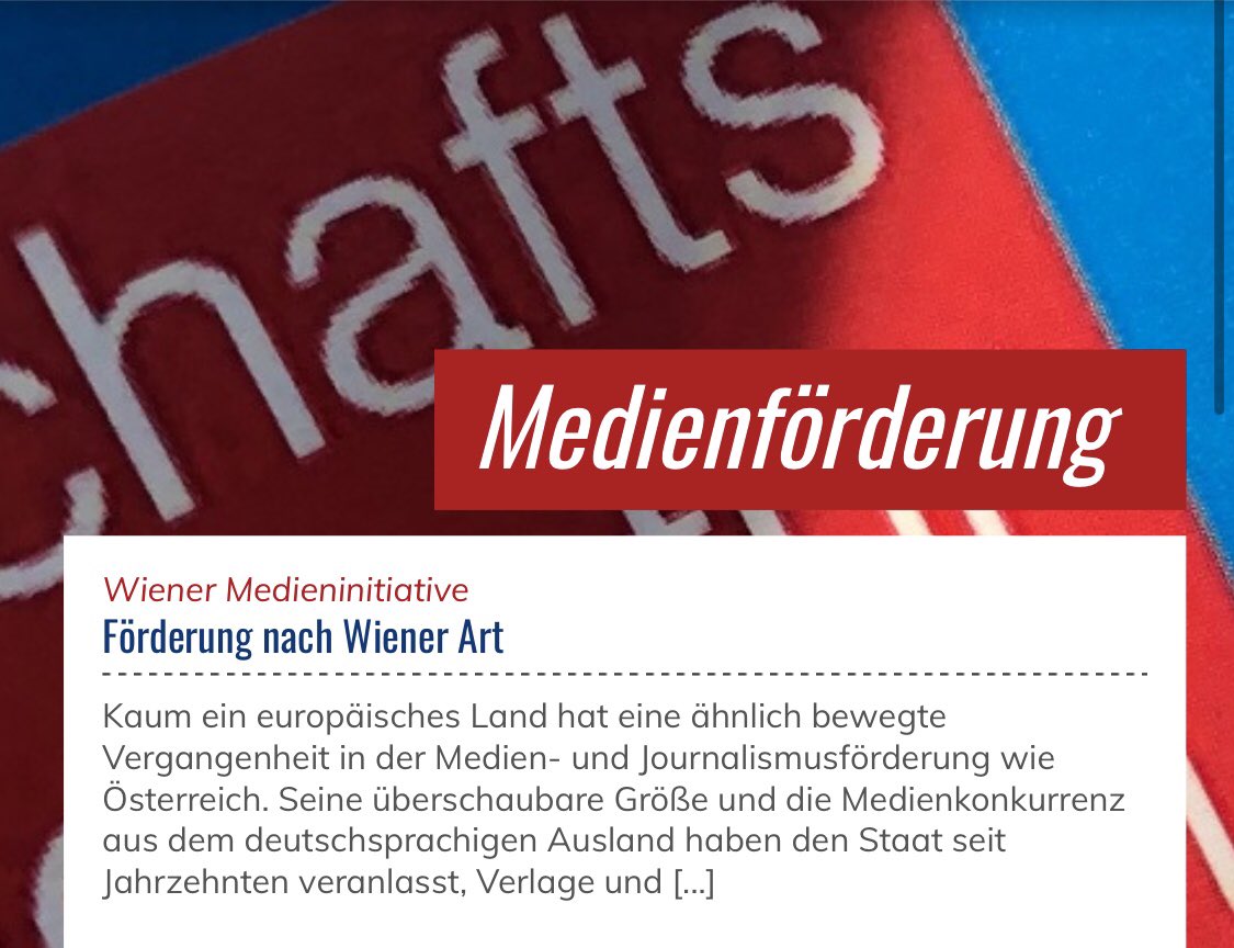Buschow, C. (2020). Wiener Medieninitiative: Förderung nach Wiener Art. journalist – Das Medienmagazin [Online]. https://www.journalist.de/startseite/meldungen/detail/article/foerderung-nach-wiener-art.html