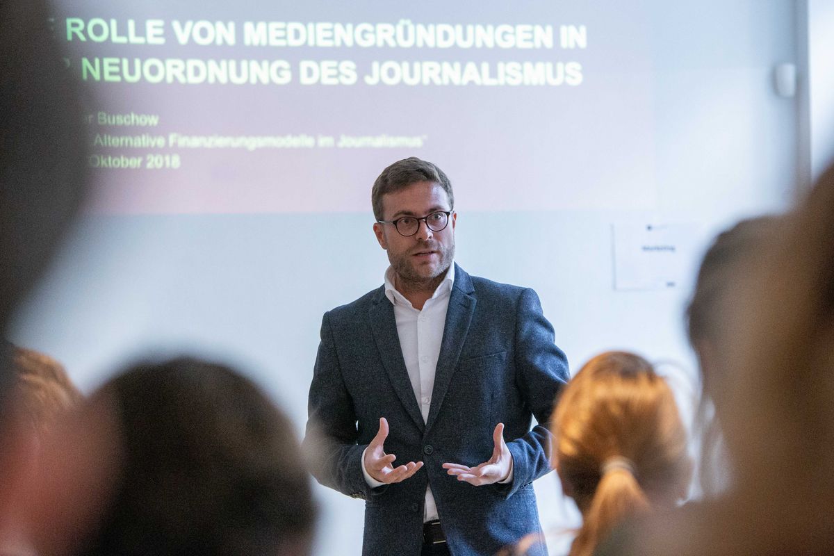 Am 13. Oktober 2018 hielt Christopher Buschow den Eröffnungsvortrag bei der Konferenz "Alternative Finanzierungsmodelle im Journalismus" im International Alumni Center (iac) der Robert Bosch Stiftung in Berlin. In seiner Keynote vor 40 (werdenden) Mediengründerinnen und -gründern aus Deutschland, Österreich und der Schweiz beleuchtete Buschow die Bedeutung von Gründungen und Start-ups in der Erneuerung des Journalismus. Zu der Veranstaltung eingeladen hatte Pauline Tillmann, Chefredakteurin und Gründerin des digitalen Magazins Deine Korrespondentin, gemeinsam mit dem iac.
