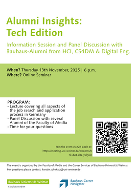 The event is organized by the Faculty of Media and the Career Services of Bauhaus-Universität Weimar.