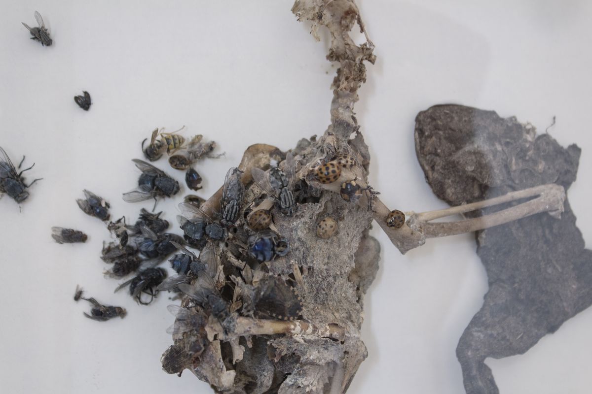 »Nature Morte 1« von Linda Schumann (Freie Kunst) ist ein Stillleben aus experimentellen und narrativen Objekten, die sich vor unkonventionellen Materialien und zur Gewohnheit gewordenen Abneigungen nicht zurücknehmen. Ist der Ekel oder das Schaudern vor den toten Fliegen und Fröschen abgelegt, zeigt sich eine Poesie, der man sich nicht entziehen kann.