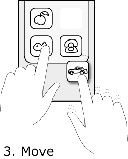Will man bisher ein Objekt auf einem Smartphone verschieben, geht dies nur, indem man das gewünschte Symbol gedrückt hält, wartet, bis es ausgewählt ist und dann verschiebt – genannt Longtap. Mit der Hold-and-Move-Geste kann man hingegen mit einem Finger den Bildschirm-Hintergrund fixieren und mit dem anderen Finger das Objekt verschieben. Damit sind Bedienung und Navigation auf Touch-Geräten auch parallel möglich und erlauben eine exaktere Eingabe. Außerdem gibt es dadurch weniger unerwünschte Handlungsauslösungen.