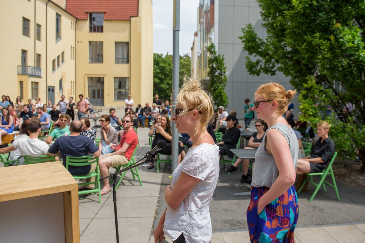 In diesem Jahr hatten sich mehr als 100 Einzelarbeiten aus über 50 Projekten um die begehrten Auszeichnungen beworben. Nach eigenen Aussagen »extrem entspannt« absolvierte die Jury, bestehend aus Christian Holtzhauer (Kunstfest Weimar), Katharina Köhler (»Ktell – Spector Bureau«), Nora Malles (»PositionsBerlin Artfair«) und Rainer Mester (Architekturbüro »Deckert Mester«), den zweitägigen Rundgang durch die Jahresschau »summaery2015«.