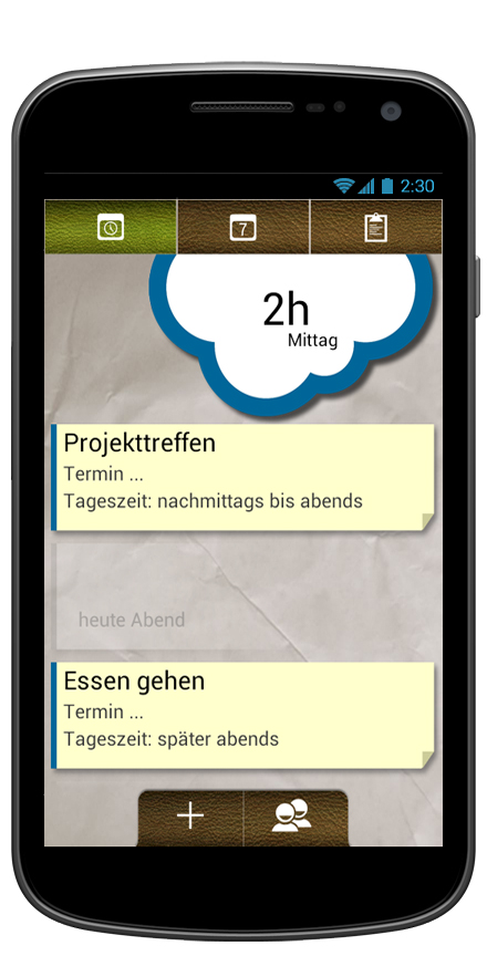 Studierende der Medieninformatik und der Visuellen Kommunikation an der Bauhaus-Universität Weimar haben gemeinsam eine Android-App entwickelt, die hilft, ein hektisches Leben zu entschleunigen und besser zu organisieren. Im Zentrum stehen dabei Aktivitäten, die Nutzerinnen und Nutzer erledigen möchten oder müssen.