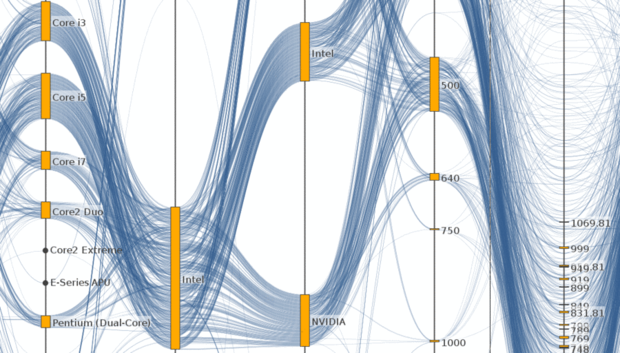 Außerdem ist die Bauhaus-Universität Weimar mit einer Patentanmeldung auf der CeBIT vertreten. Der an der Professur Systeme der Virtuellen Realität entwickelte »Product Explorer« hilft Nutzerinnen und Nutzern bei der Auswahl von Produkten mit vielen und komplexen Eigenschaften. Das System verbessert im Vergleich zu herkömmlichen Webshops die Eingrenzung von Suchergebnissen durch eine erweiterte und interaktive Darstellung als »Parallele Koordinaten«. Alle Produkte und deren Eigenschaften sind somit auf einen Blick zu erkennen und können entsprechend der Anforderungen und Bedürfnisse der Anwenderinnen und Anwender gefiltert werden. Der Product Explorer wurde von Patrick Riehmann, Jens Opolka und Prof. Dr. Bernd Fröhlich entwickelt.