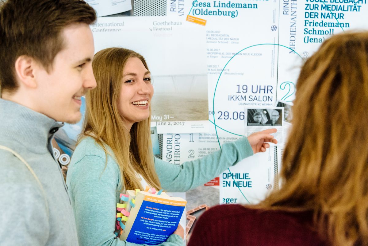 Neben den Inhalten soll auch das Campus-Leben vor Ort überzeugen. Das Rahmenprogramm bietet die Möglichkeit, studentische Vertreterinnen und Vertreter aller Studiengänge kennenzulernen, die Ihnen als »Bauhaus.Botschafter« für Fragen rund um Studium und Studienleben in Weimar zur Verfügung stehen. Auch können Interessierte einen Termin mit der Fachstudienberatung vereinbaren, um gleich vor Ort Bewerbungs- und Zulassungsmodalitäten zu klären.