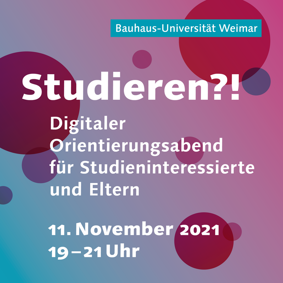Die Teilnahme am Orientierungsabend ist kostenlos, eine vorherige Anmeldung ist nicht nötig. Wer am Donnerstagabend keine Zeit hat, findet Informationen und Ansprechpersonen zum Studieren und Leben in Weimar unter: www.uni-weimar.de/digital-orientieren