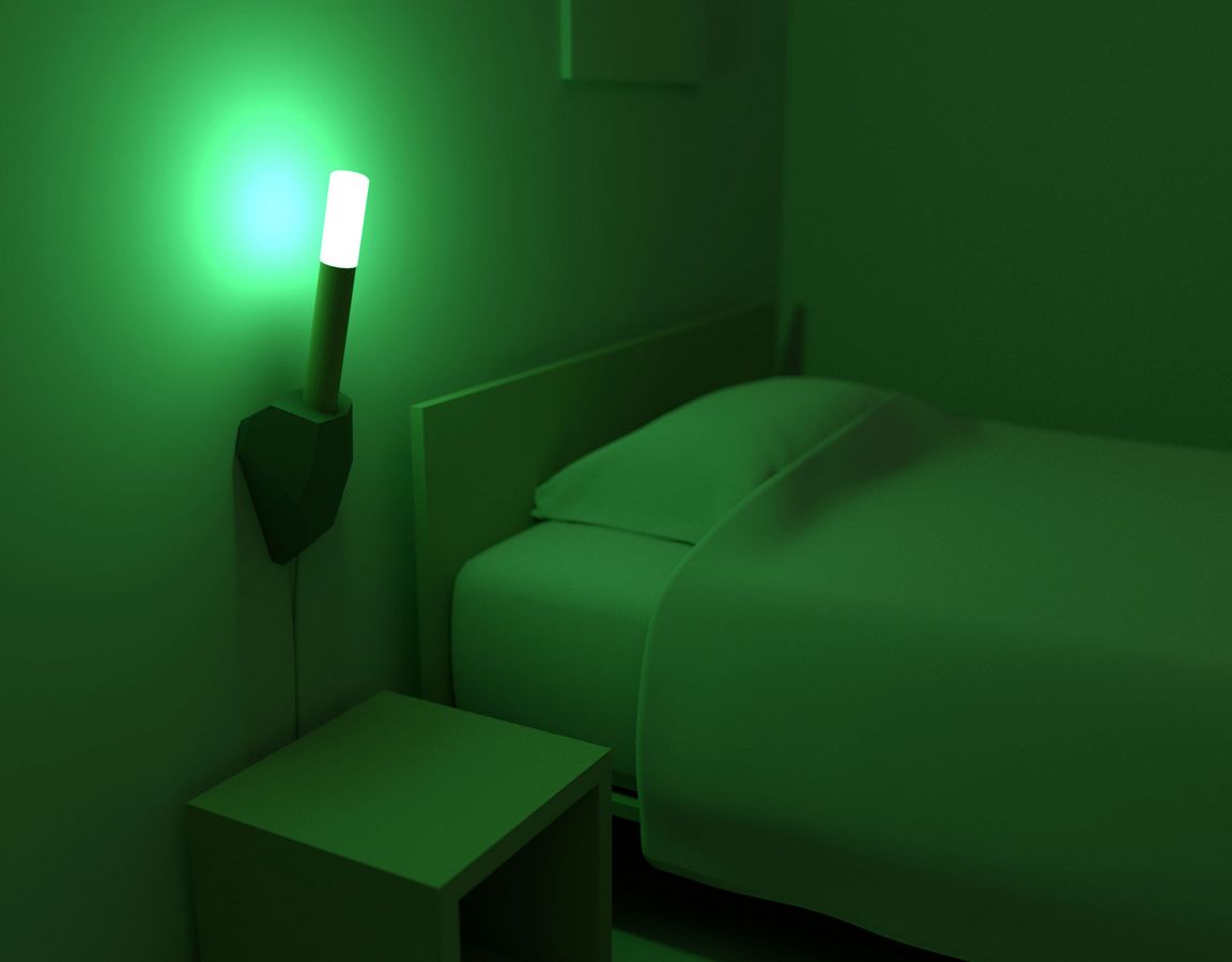 »Nachts mal eben raus für ein Glas Wasser oder einen Besuch im Badezimmer: das kennt wohl Jeder. Ein Problem dabei ist die viel zu helle Deckenleuchte. Dafür wollte ich eine Lösung schaffen«, beschreibt Hatlapa seine Intention. »Hat man es zurück ins Bett geschafft, kann Fosfor einfach wieder in die Wandhalterung gesteckt und damit ›gelöscht‹ werden.« Kopfüber hineingesteckt lässt sie die Nutzerinnen und Nutzer im langsam schwächer werdenden Licht ruhig einschlafen.