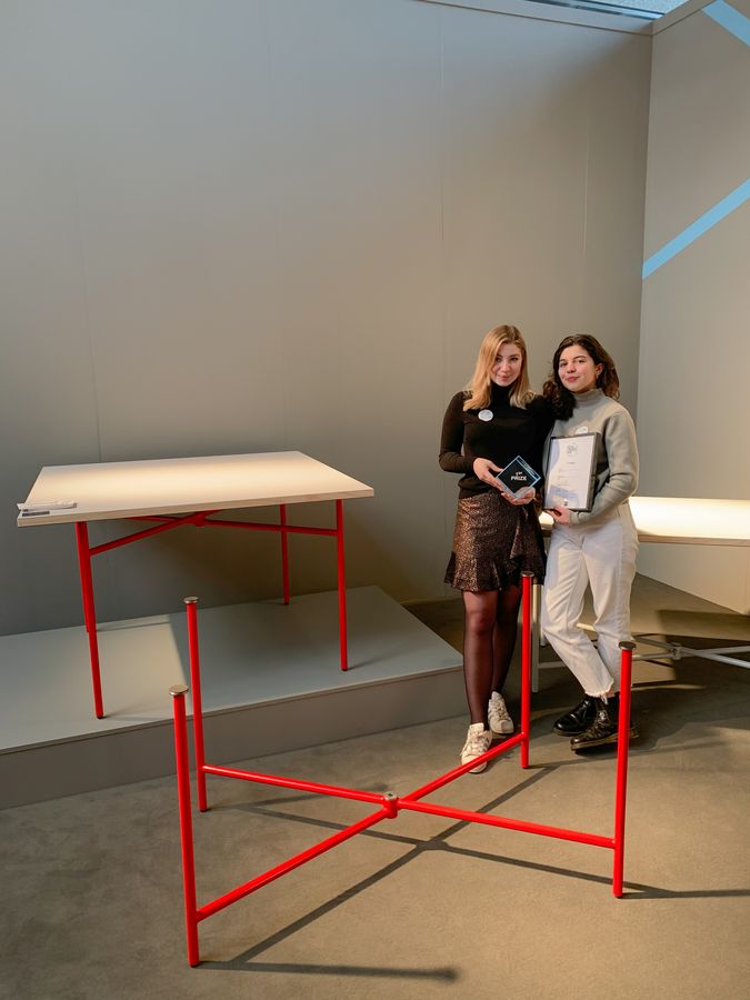 »Wir wollten einen Tisch entwickeln, der sich flexibel dem Nutzer anpasst und intuitiv im Aufbau und der Benutzung ist. Deswegen haben wir unser Gestell ›Levi‹ genannt, was vom Lateinischen ›levis‹ abgeleitet ist und leicht bedeutet. Denn unser Gestell ist nicht nur leicht im Gewicht, sondern auch leicht im Aufbau«, so die beiden Preisträgerinnen über ihren Entwurf. »Wir freuen uns sehr über das positive Feedback der Jury und die Erfahrungen, die wir hier auf der Messe machen dürfen.«