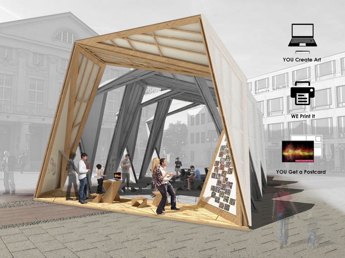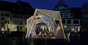 Im Semesterprojekt sind temporäre Ausstellungsarchitekturen entstanden, die 20 Studierende aus elf Ländern im Masterstudiengang MediaArchitecture entwickelt, realisiert sowie an verschiedenen Standorten erprobt haben. Die Bauten bilden einen Rahmen für die Präsentation unterschiedlicher künstlerischer Formate. Zugleich laden sie die Besucherinnen und Besucher zur Interaktion ein, zum Beispiel mit Inhalten zur Bauhaus-Geschichte. Neben Modellen in den Maßstäben 1:20, 1:10, 1:2 und 1:1 sind animierte 3D-Modelle zu sehen, die die Architekturen in Stadträumen zeigen. Mehrere Videos dokumentieren den mehrmonatigen Entwurfsprozess.