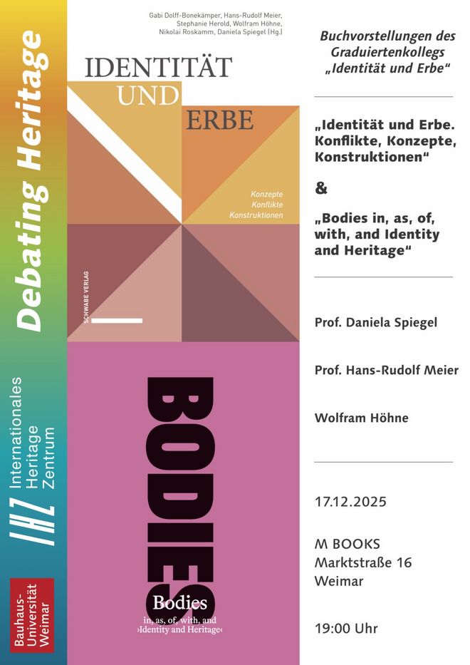 Am 17. Dezember 2025 um 19 Uhr lädt das Graduiertenkolleg »Identität und Erbe« zur Buchvorstellung in die Buchhandlung MBOOKS, Marktstraße 16, Weimar ein. Anlass ist der Abschluss von neun Jahren intensiver Forschung unter dem Titel »Identität und Erbe«.
