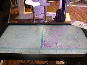 Der Tisch wurde von Mitarbeitern und Studierenden an der Professur für Systeme der virtuellen Realität an der Fakultät Medien entwickelt und dem Messepublikum von zwei beteiligten Studenten am Stand der Zeiss Microimaging GmbH präsentiert. Die Entwicklung soll vor allem in den Bereichen der medizinischen Forschung und Mikrobiologie eingesetzt werden. Spezielle, auf der Grafikkarte implementierte „Out Of Core Rendering“-Verfahren erlauben z.B. das stufenlose Zoomen, die Navigation innerhalb und das Vergleichen der detailreichen Gewebeschnitte in unterschiedlichen Färbungen zu Diagnose- oder Lehrzwecken. Besonders die flüssige Interaktion der bis zu vielen Gigabyte großen Bilder und die Detailschärfe des Entwicklungsprototyps sorgten dabei für Begeisterung.