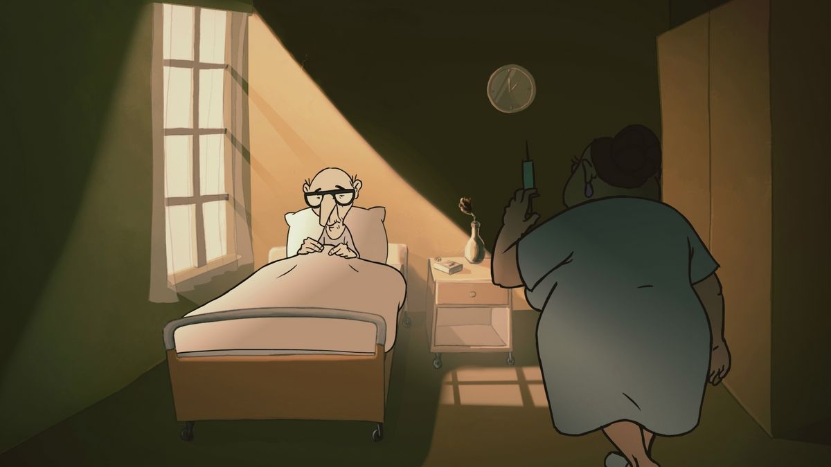 »ZWEIBETTZIMMER« erzählt von zwei schwerkranken alten Männer, die sich ein Krankenhauszimmer teilen, in dem allein das Fenster Zerstreuung und Verbindung zur Außenwelt bietet und damit zu einer heißbegehrten Ressource wird. » ZWEIBETTZIMMER« ist eine Parabel über die Gier des Menschen - ein animiertes Kammerspiel über die Macht von Fantasie und Illusion.