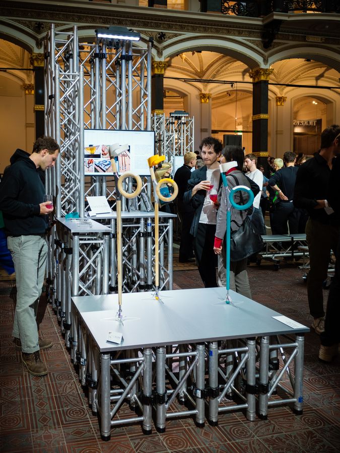 Tom Kemter und Niels Cremer verwandeln die klassische Unterarmgehstütze unter dem Titel »Standalone« in ein ästhetisches und funktionales Hilfsmittel. »Krücken sollen eigentlich Mobilität und Unabhängigkeit ermöglichen – aber ihr Design hat sich seit über hundert Jahren kaum verändert und wird oft als stigmatisierend empfunden«, erklärt Niels Cremer. »Uns war es wichtig, ein Hilfsmittel zu gestalten, das nicht nur funktional ist, sondern auch durch Ästhetik und Materialität überzeugt.« Tom Kemter ergänzt: »Ein zentrales Problem herkömmlicher Gehstützen ist, dass sie nicht eigenständig stehen können. Unsere ausklappbaren Standfüße lösen das ganz praktisch: so bleiben die Hände frei, und man ist im Alltag deutlich flexibler.«