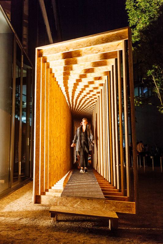 »Wir erforschen mit unserer Arbeit das kommunikative Potenzial menschlichen Gehens mit seinen akustischen Signalen und bieten so einen Gegenentwurf zu existierenden visuellen, sprachlichen und textuellen Kommunikationswegen«, erläutert Vincent Krause den konzeptionellen Ansatz. Insgesamt acht Wochen lang hatte das dreiköpfige Projektteam 2014 am Entwurf gearbeitet, Sponsoren akquiriert und die Konstruktion aufgebaut.