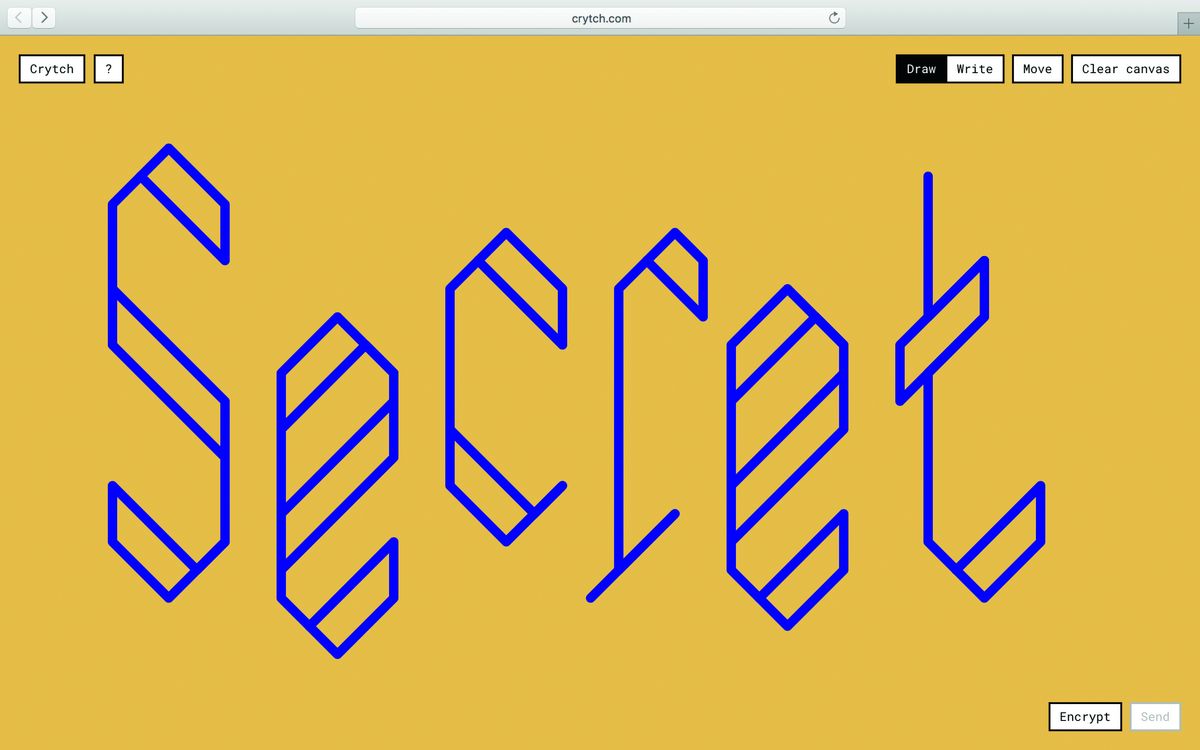 »Viele Verfahren sind schlichtweg zu kompliziert und zu undurchsichtig oder es ist eine umständliche Installation notwendig«, so die beiden Gestalter. »Wir wollten eine Alternative schaffen, die gut verständlich und unkompliziert zu nutzen ist und die vor allen Dingen Spaß und somit Lust auf die Nutzung macht.« Was würde passieren, wenn man den eigenen Nachrichten im Moment der Verschlüsselung beispielsweise zusehen könnte? »Crytch« ermöglicht genau das: die Gestaltung und Verschlüsselung textlicher und visueller Botschaften.