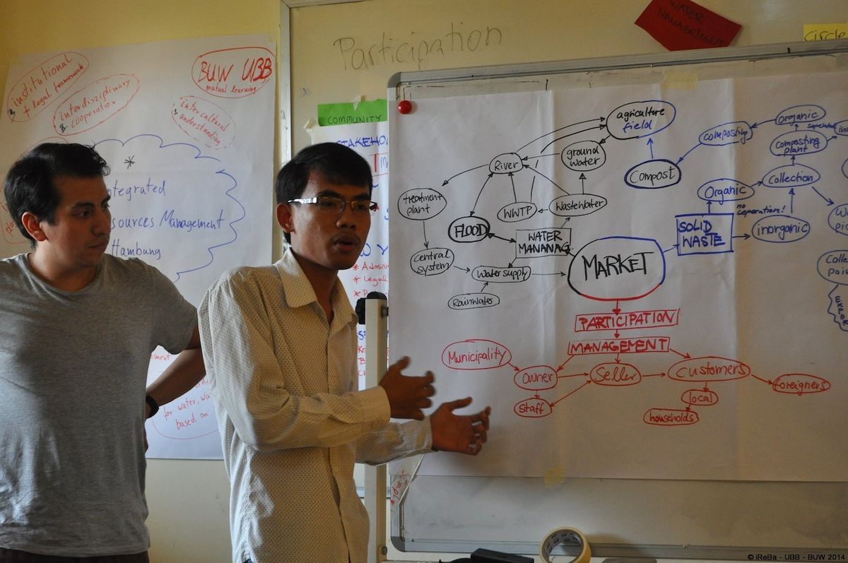 Um Lösungsvorschläge für diese fehlenden Infrastruktursysteme erarbeiten zu können, teilten die Organisatoren das Projekt in einen theoretischen Teil, der sowohl in Kambodscha und Deutschland stattfand und den Studierenden die Grundlagen des nachhaltigen städtischen Ressourcenmanagements vermittelte. Im zweiten praktischen Teil entwickelten die Studierenden vor Ort in Battambang ein modellhaftes Konzept für angepasste und integrierte Infrastruktur (Wasser, Abwasser, Abfall als Ressource) nach modernen Gesichtspunkten.