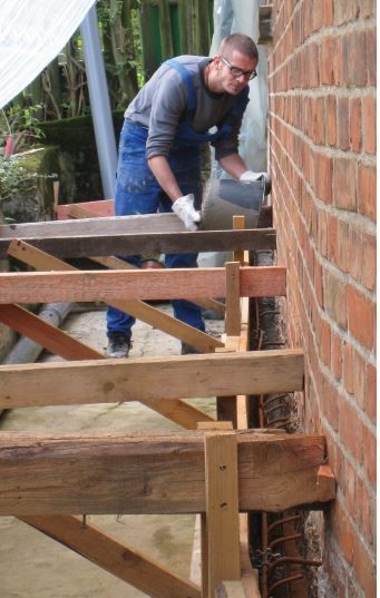 Unter Beteiligung zahlreicher Industriepartner entwickelt die Professur Bauchemie und Polymere Werkstoffe im Rahmen des Vorhabens »nuBau-Transfer« neue Methoden und Technologien für eine nutzerorientierte Bausanierung. Wichtige Schwerpunkte sind hierbei die Ergänzung geschädigter Holzbauteile und die denkmalgerechte Instandsetzung von Sichtbeton mit der Wiederherstellung der originalen Farbigkeit und Textur der Oberfläche.