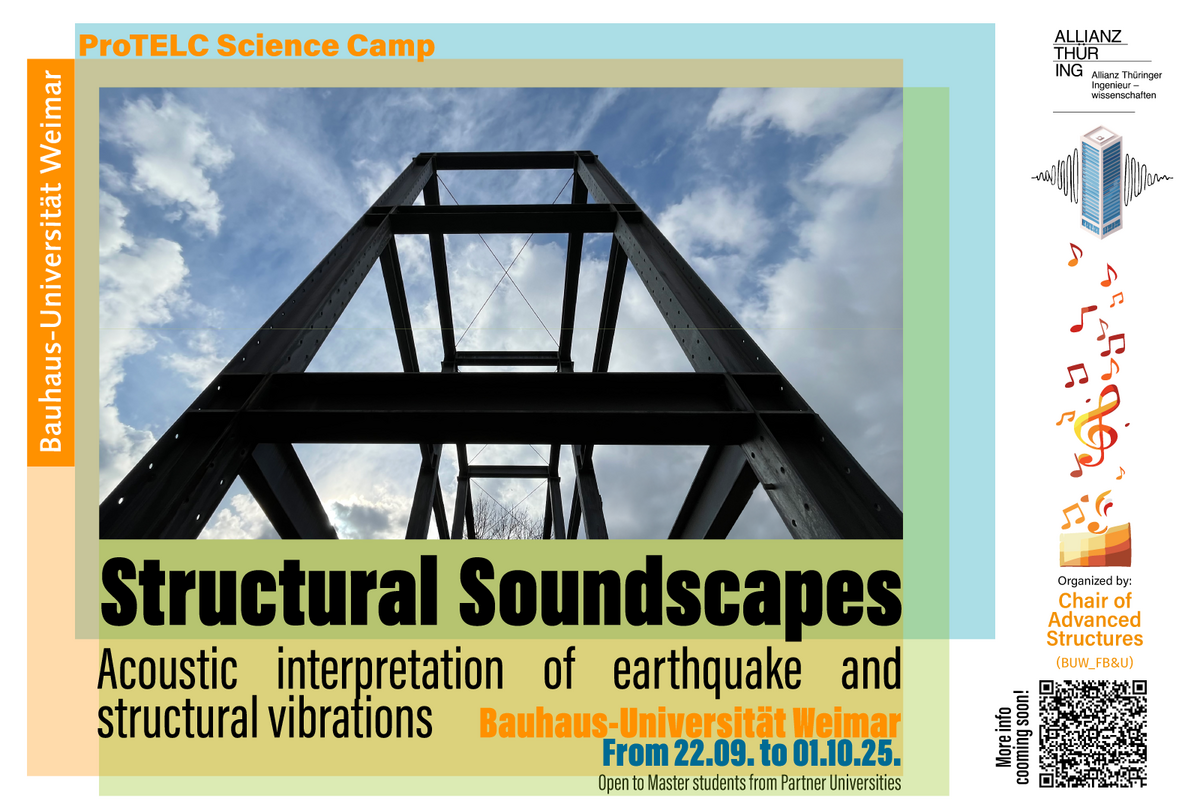 Vom 22. September bis 1. Oktober 2025 findet das achte Science Camp für Thüringer Ingenieurstudierende an der Bauhaus-Universität Weimar statt. Im Fokus der hochschulübergreifenden Lernreihe stehen dieses Mal akustische Signale, die von schwingenden Baustrukturen ausgehen. Ziel ist es, Hands-On-Erfahrungen mit Bauwerkserschütterungen und insbesondere Erdbeben zu sammeln und sich mit Studierenden und Industriepartnern zu vernetzen.