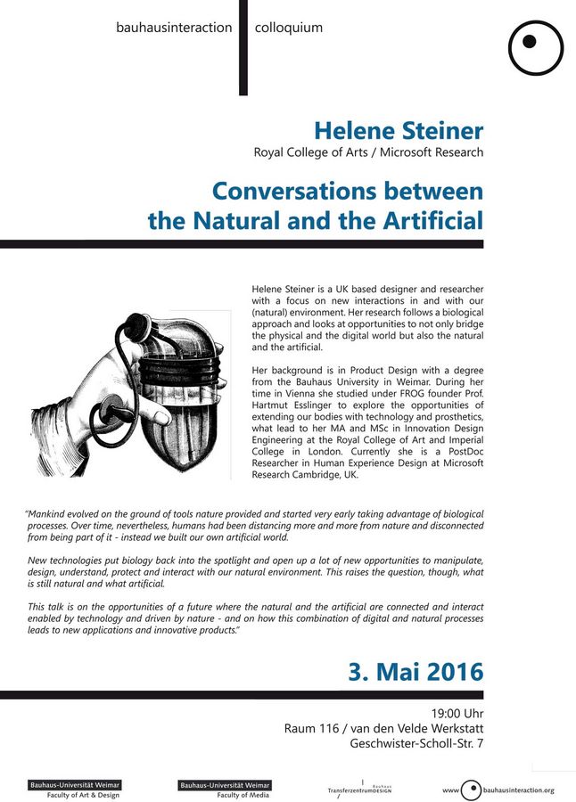 Weiterführende Informationen finden Sie im Internet unter http://bauhausinteraction.org/2016/04/talk-helene-steiner/