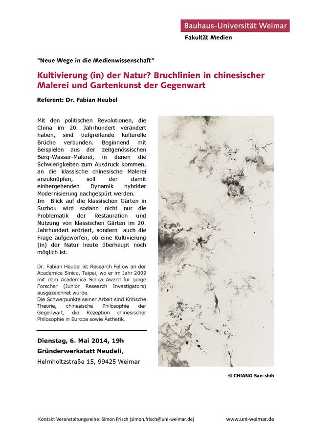 Dr. Fabian Heubel: »Kultivierung (in) der Natur? Bruchlinien in chinesischer Malerei und Gartenkunst der Gegenwart«