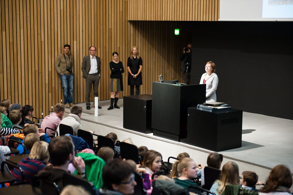 Bei der Auftaktveranstaltung im Audimax war zu spüren, dass die Kinder großes Interesse und Potenzial haben, sich kreativ in den Prozess der Schulraumgestaltung einzubringen. Aufmerksam verfolgten sie die Kurzvorträge und meldeten sich anschließend selbst zu Wort. Konkret wurden beispielsweise Wünsche nach einem Labyrinth, einer Achterbahn oder einer Sternwarte geäußert. Eine Schülerin erkundigte sich pragmatisch nach Sponsoren für den Umbau.