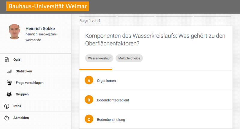 »Wir haben bereits mehrere Gamification-Ansätze in der Lehre getestet, doch bislang war kein Tool so erfolgreich wie die Quiz-App von der Mainzer keeunit GmbH«, erläutert Heinrich Söbke, der den Einsatz der Quiz-App in Zusammenarbeit mit dem eLab der Bauhaus-Universität Weimar unter Leitung von Jun.-Prof. Dr. Steffi Zander plante und betreute. »Bisher wurden über 20.000 Fragen von unseren Studierenden richtig beantwortet. Das Spiel ist so beliebt, dass es sich bereits unter einigen Urbanistik-Studierenden herumgesprochen hat, welche die App auch außerhalb des regulären Bachelor-Studiums selbstständig nutzen«, fährt er fort. Zwar gäbe es noch wenige Kinderkrankheiten zu beheben, in Zukunft könnte das Format aber auch auf weitere Lehrveranstaltungen an der Bauhaus-Universität Weimar übertragen werden, sind sich Lehrende und Studierende einig.